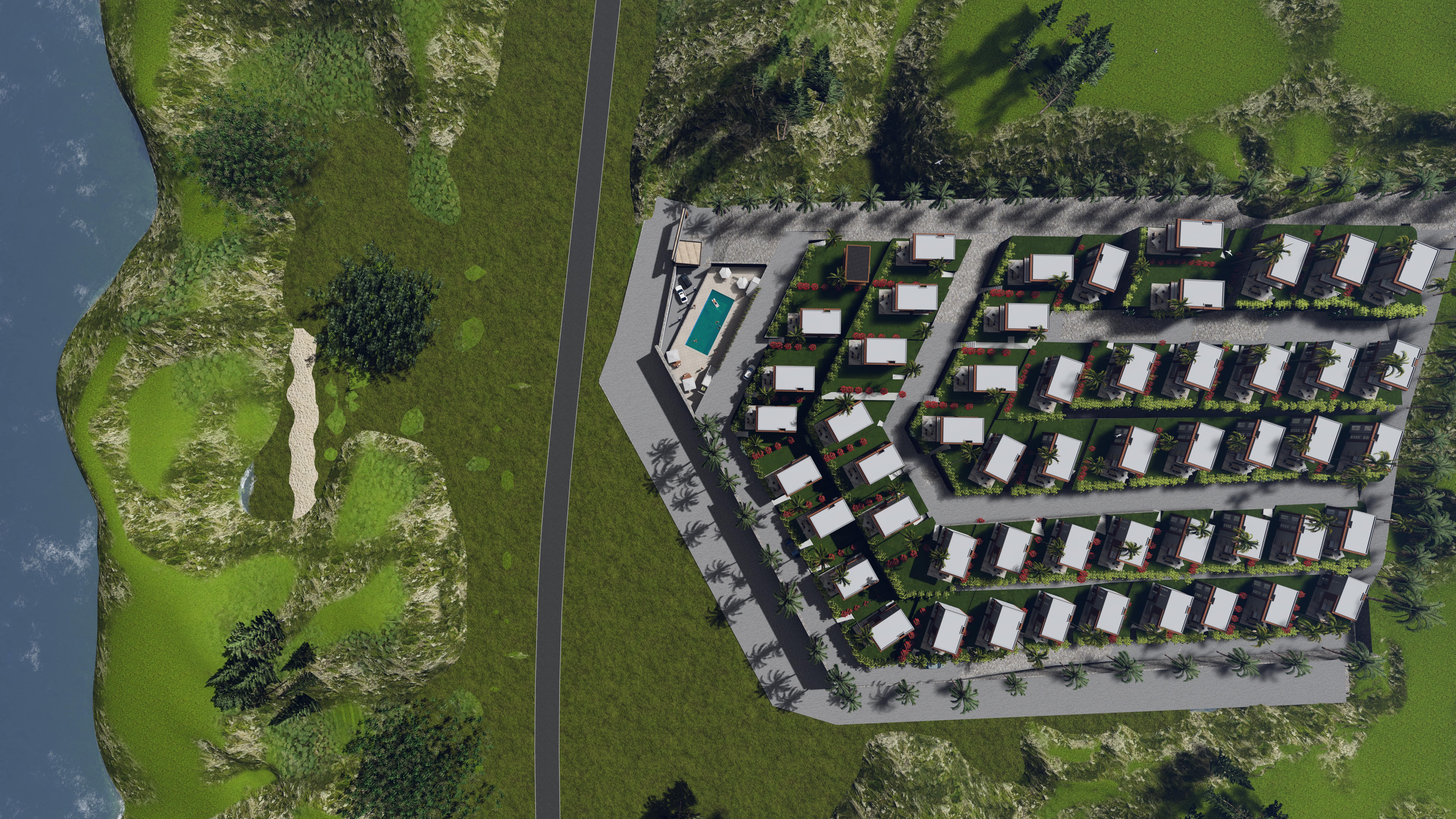 Sıcak yaz günlerinde serinlemenin keyfini açık yüzme havuzunda çıkarabilir, aileniz ve komşularınızla keyifli vakitler geçirebilirsiniz. Ayrıca, sosyal tesislerde düzenlenen etkinliklerle komşuluk ilişkilerinizi güçlendirebilir ve yeni dostluklar kurabilirsiniz. Projemizin bir diğer avantajı da her villa önüne şahsi araçlarınız için ulaşım ve park imkanlarının bulunmasıdır. Özel aracınızla rahatça ulaşabileceğiniz bu villalarda, kendinize ait özel bir yaşam alanında huzurlu ve konforlu bir yaşam sizi bekliyor olacak.